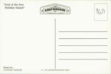 A plastichrome image of the M.V.S. Abegweit ferry sailing at sea with passengers on deck. Distributed/ Published by Island Wholesale. Made in Charlottetown, P.E.I., Canada.