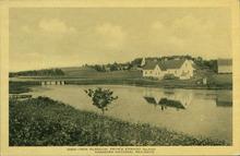 A black and white photograph of Rustico Harbour.