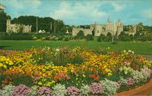 Colour photograph of a panoramic view of the Tower of London and Dunvegan Castle at Woodleigh Replicas.